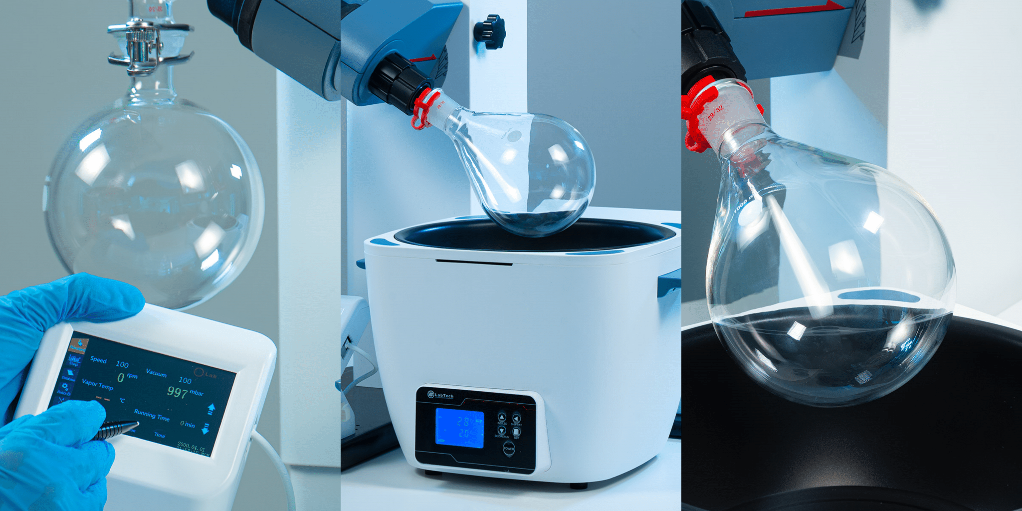 Rotary Evaporator 旋轉濃縮儀 – 就是同時透過這兩種影響蒸發的因素,來增加溶液分離的效率及可能性: