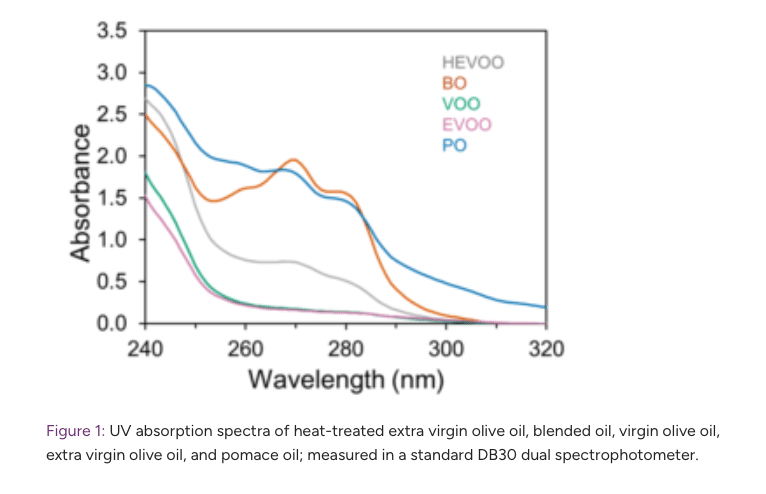 DB30 可涵蓋至 190 nm 的紫外波段,具備 >3 Abs 的吸收範圍,使其適合測定如橄欖油、熱處理油品等高紫外吸收樣本。
