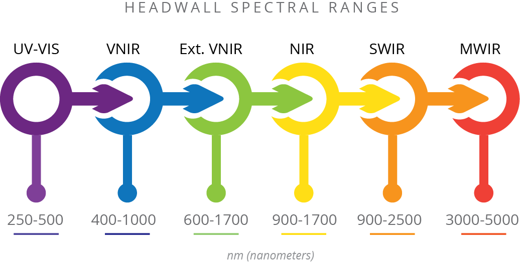 VNIR (400-1000nm) NIR (900-1700nm) Extended VNIR (550-1700nm) SWIR (900-2500nm) |
